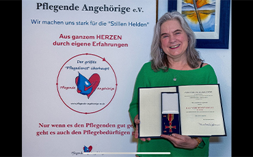 Mit großer Freude und tiefem Respekt gratulieren wir unserer 1. Vorsitzenden des Vereins Pflegende Angehörige e. V. zur Verleihung des Bundesverdienstkreuzes. Diese hohe staatliche Auszeichnung würdigt ihr langjähriges, unermüdliches Engagement für pflegende Angehörige. Mit außergewöhnlichem Einsatz, fachlicher Kompetenz und großem persönlichen Herzblut setzt sie sich seit vielen Jahren für die Interessen, Rechte und die gesellschaftliche Anerkennung von Menschen ein, die ihre Angehörigen zu Hause pflegen. Ihr Wirken geht weit über organisatorische Aufgaben hinaus. Sie schafft Netzwerke, initiiert Unterstützungsangebote, begleitet Betroffene persönlich und trägt maßgeblich dazu bei, das Thema häusliche Pflege in Politik und Öffentlichkeit sichtbar zu machen. Die Verleihung des Bundesverdienstkreuzes ist nicht nur eine persönliche Ehrung, sondern auch eine Anerkennung der wichtigen Arbeit unseres gesamten Vereins. Wir sind stolz, eine so engagierte Persönlichkeit an unserer Spitze zu haben, und danken ihr von Herzen für ihren Einsatz. Herzlichen Glückwunsch zu dieser besonderen Auszeichnung!