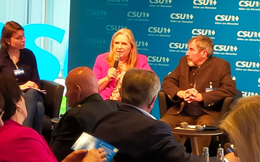 Vorsitzende Kornelia Schmid war eingeladen und trat auf der Bühne für die Anliegen Pflegender Angehöriger ein. Die Podiumsdiskussion „Erfolgsmodelle für die Pflege in Bayern – Ein Gemeinschaftsprojekt“ richtete den Fokus vor allem auf die Zusammenarbeit der einzelnen Akteure. Denn auf allen Ebenen gibt es großes Engagement für das Thema Pflege, das gebündelt unheimlich viel erreichen kann und bereits erreicht.